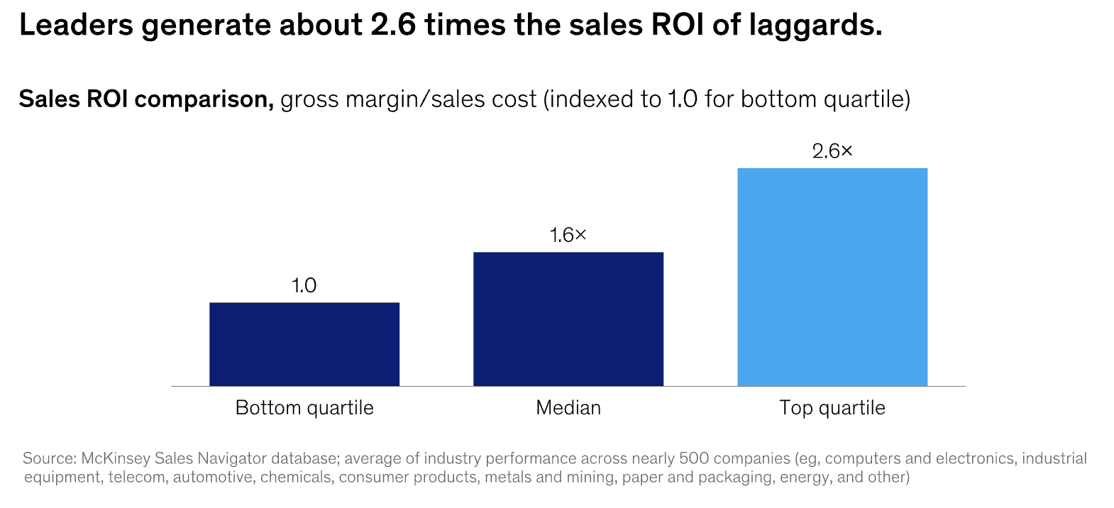 According to McKinsey & Company, top-quartile sellers generate, on average, 2.6x the sales of bottom-quartile sellers. That isn’t a marginal difference. It’s a multiplier.